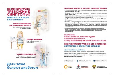 Акция рассчитана на родителей и педагогов, которые могут своевременно обратить внимание на тревожные симптомы сахарного диабета и тем самым предотвратить его тяжелые последствия. При малейших признаках этого заболевания эндокринологи советуют немедленно обращаться к врачу.