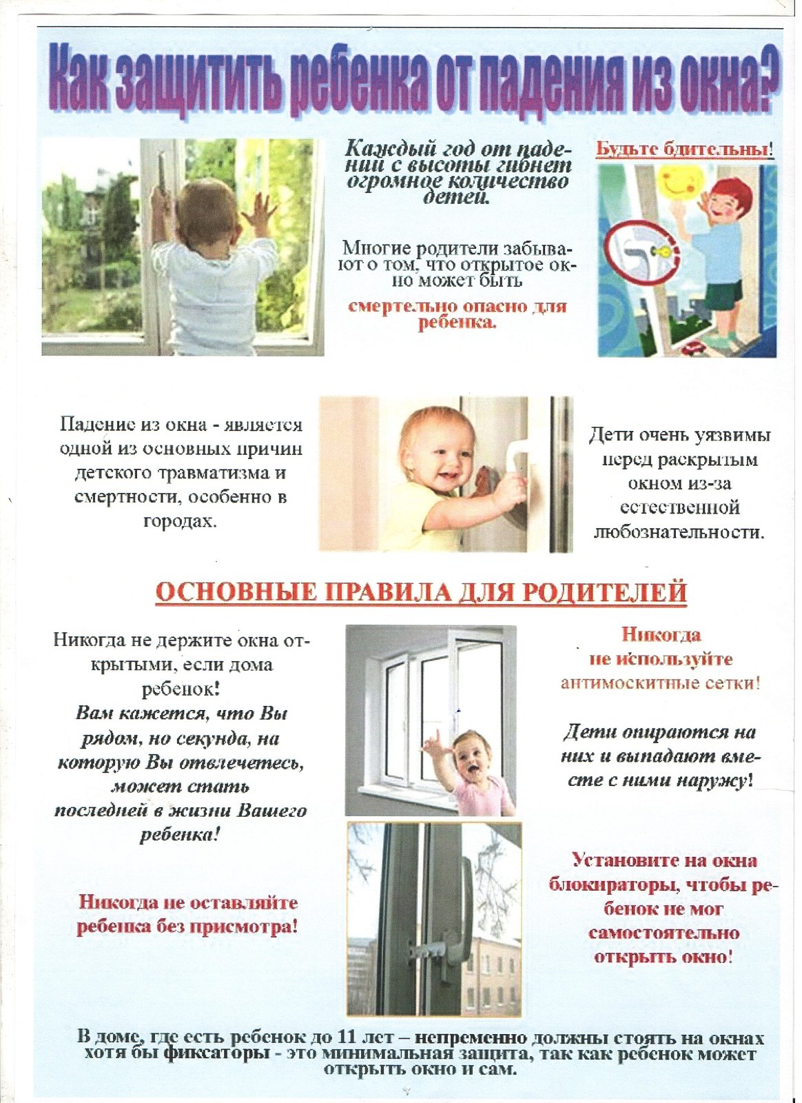 Защити ребенка от падения из окна